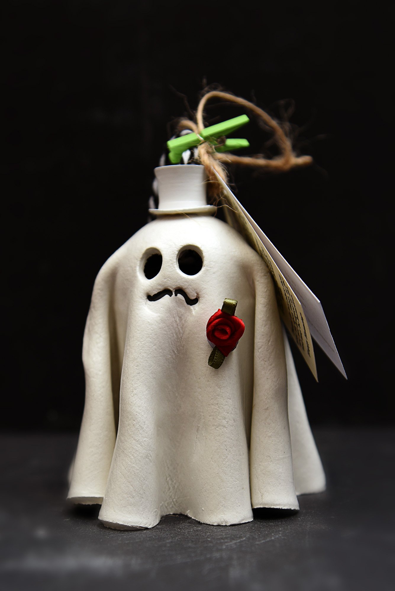 Handmade clay sheet ghosts, each individually shaped and full of character. Lightweight, durable, and ideal as ornaments or hanging decoration. Comes with their own unique name and date of passing. Each Ghost measures between 10cm - 11cm depending on style.